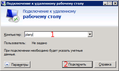 - В открывшемся окне набираем: в поле «Компьютер» - plany